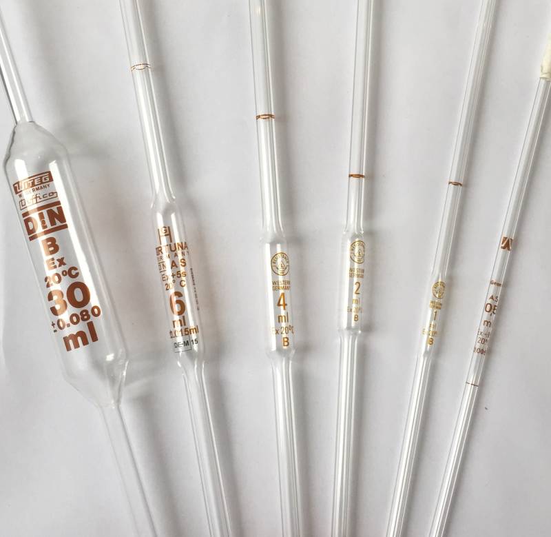 Als je een pipet hebt gebruikt, blijft er altijd een klein beetje vloeistof in achter. Als je een andere oplossing (met een andere concentratie) moet pipetteren, neem je een schone en droge pipet. Als die er niet is, ga je de gebruikte pipet eerst voorspoelen met die andere oplossing